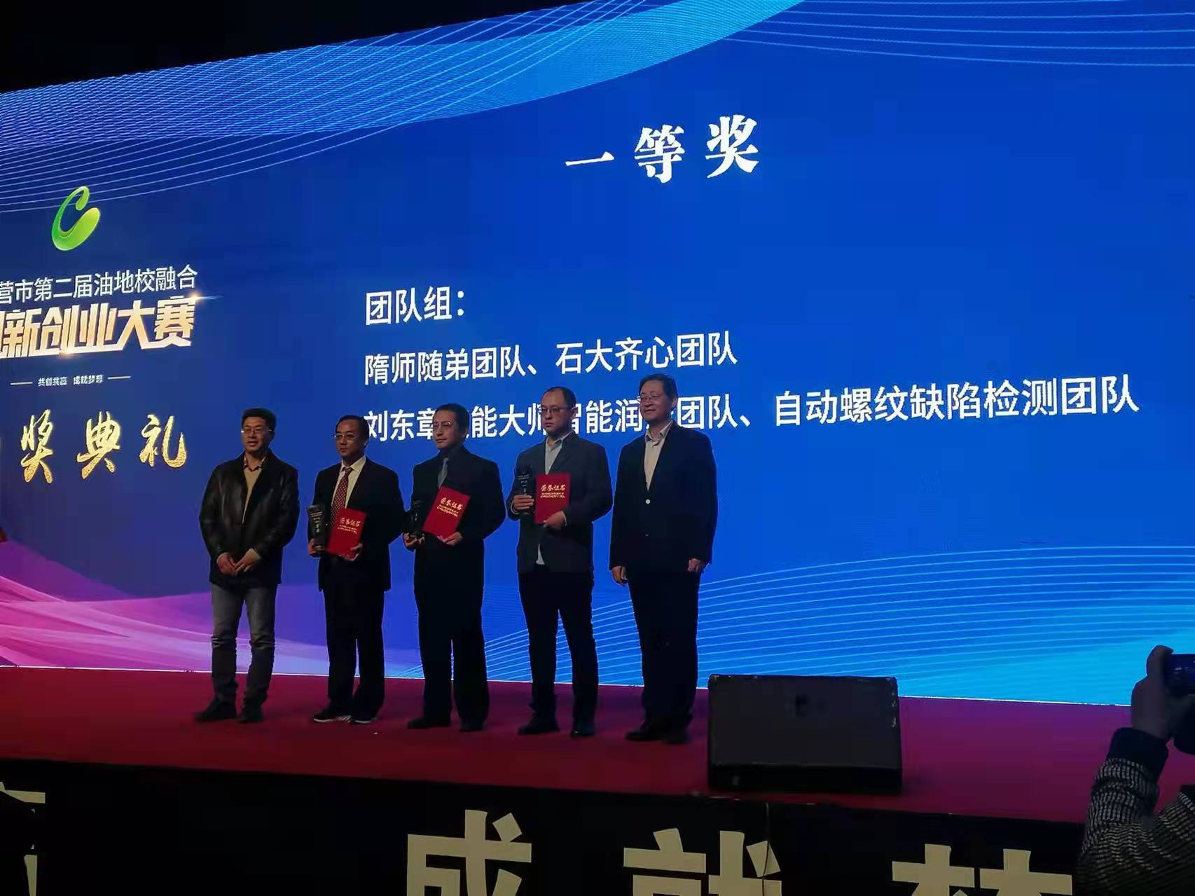 我公司自動螺紋缺陷檢測團隊于東營市第二屆油地校融合創(chuàng)新創(chuàng)業(yè)大賽中,經(jīng)報名、形式審查、網(wǎng)上初選、現(xiàn)場晉級、現(xiàn)場監(jiān)督公證等程序,經(jīng)過激烈的競爭,在130個團隊中,榮獲一等獎。